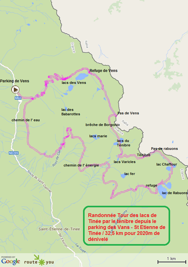 - 5h00 Branle bas de combat ! debout les braves on est parti pour la journée faire le tour des lacs de la haute Tinée dans le Mercantour !Le ciel est hyper étoilé, il fait bon malgré l'heure matinale. Après 2h15 de marche, je suis au niveau du refuge de Vens et de son chapelet de lacs. La vue est magnifique. Je continue vers le pas de Vens qui m'amène à la frontière avec l' Italie. L' accès au pas de Vens sans être difficile, est délicat car il reste pas mal de neige qui à cette heure (7h30) est verglacée. Ensuite il faut grimper dans les roches les plus stables et avec l'aide des mains, les derniers mètres sont laborieux ! Au pas de Vens, le soleil est au rendez vous.Le col donne accès au val Tura côté italien, d'anciens abris militaires rappellent que ces montagnes conservent les empreintes d'aménagements militaires dont certains servent d'abri en cas de mauvais temps (c'est le cas au pas de Vens). Après quatre heures de marche et sur le versant français, je suis à la Brèche de Borgonio, point de passage pour redescendre vers les lacs de Ténibre.