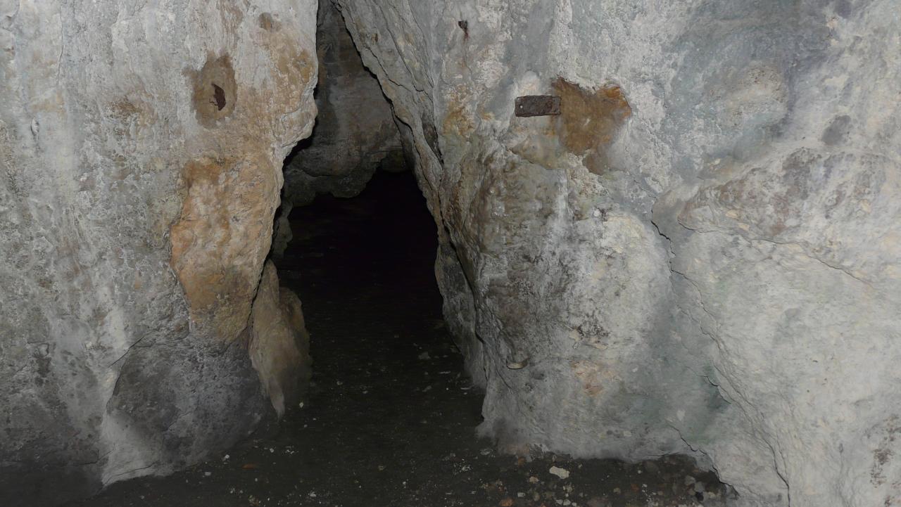 - Je pénètre dans la grotte par un passage bas, et rapidement le plafond se relève. La grotte est concrétionnèe mais les concrétions sont vieillissantes car ternies, s'y ajoute sans aussi quelques actes de vandalisme ! La grotte est assez profonde et se poursuit par deux petits lacs, le premier se franchit avec de l' eau à hauteur de botte, le second est plus profond et atteint la ceinture. La grotte mesure 850m de longueur et se termine par un siphon et étroiture de boue.