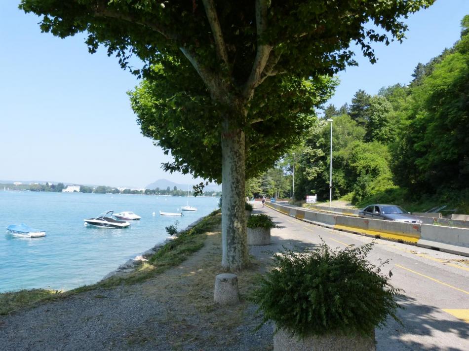 - La descente se fait tranquillement en direction de Talloires, je croise de nombreux cyclistes. La route en direction d' Annecy est beaucoup plus problématique, car il y a beaucoup de circulation et elle n' est pas du tout aménagée pour les cyclistes et il n' y a pas de piste cyclable (pour le moment ?). Donc route très dangereuse et attention aux arrêts voitures dans les traversées de village ! La piste cyclable venant d' Annecy s' arrête pour l'instant à Veyrier du lac. Superbe paysage sur la lac d' Annecy !