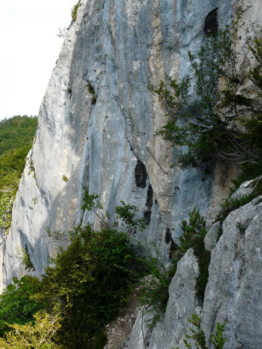 - Deuxième partie : C' est après la seconde passerelle (dite de la frousse !) que débute la seconde partie. Un mur vertical donne accès en traversée à une série de petites grottes où on peut prendre le temps d' admirer le paysage avant d' attaquer le secteur difficile! Classée très difficile.