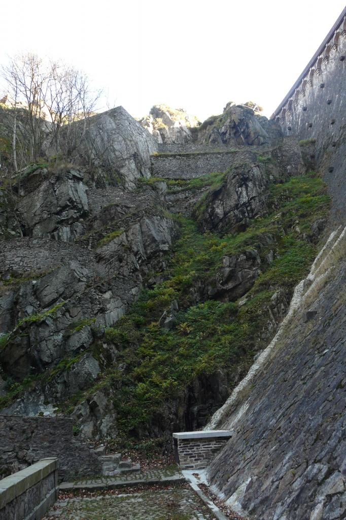 - Un chemin en escalier a été aménagé sans doute lors de la construction du barrage, pour y accéder ! Bel ouvrage...bonne montée...bonne suée !